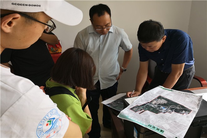 在完成基本调研任务后,孙老师带领团队成员再次与村中领导干部积极协商、交换意见,将规划构想与实际情况及村委意愿结合考虑,切实为谭屯村旅游规划建设的开展出谋划策。经详实商议,团队最终界定了村庄周围数块片区的旅游规划用途及村中细部规划建设思路,为谭屯村旅游建设的发展打下坚实基础。