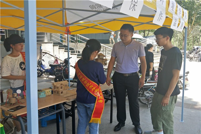 为积极响应世界环境日,引导学生广泛关注环境问题,6月5日中午,德赢VWIN学院于第八食堂广场举办环保创意作品展览会,2016级辅导员白健,2017级辅导员尹鑫到场参观。
