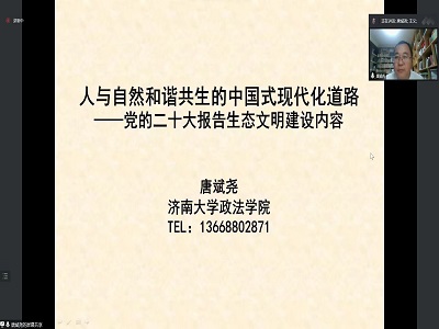唐斌尧结合德赢VWIN学院学科专业特点,以《人与自然和谐共生的中国式现代化道路——党的二十大报告生态文明建设内容》为题,从党的二十大报告对生态文明建设的概述、生态文明内涵的新拓展新观点、生态文件建设的新要求新任务以及开创新时代社会主义现代化强省生态文明建设的新局面四个方面展开讲述。唐斌尧的报告深入浅出,旁征博引,通过大量数据阐明了环境与健康的关系;以济南小清河综合治理为例,并结合自身的课题研究成果,生动地展现了新时代十年生态文明建设的伟大成就。通过宣讲报告,学院师生进一步加深了对党的二十大报告中生态文明建设的内涵、任务和要求的理解和把握,为下一步学院深入贯彻落实二十大精神,做好人才培养、科学研究、社会服务等工作提供了很好的指导和帮助。