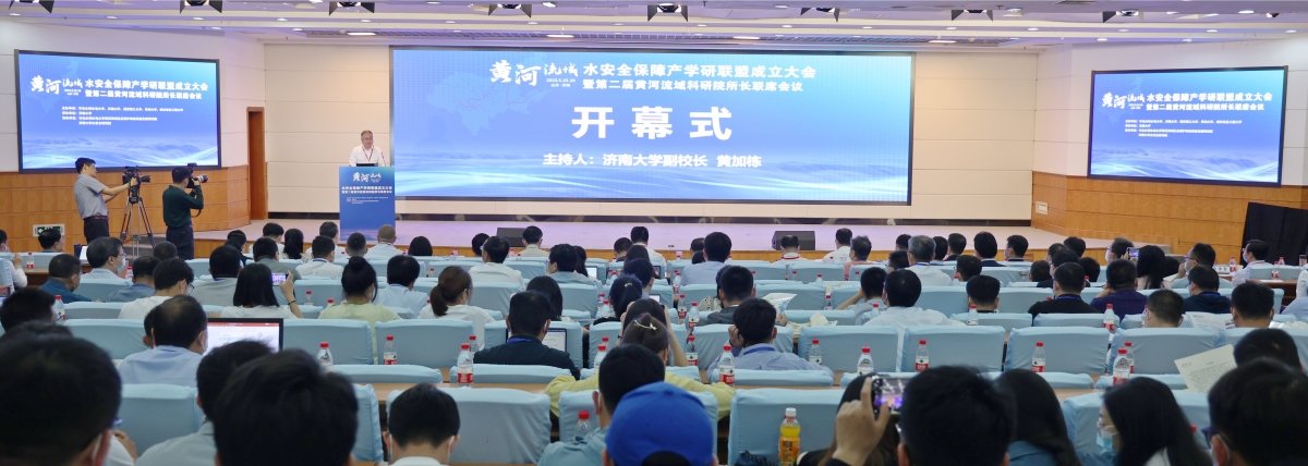 为深入学习贯彻党的二十大精神,贯彻落实习近平总书记关于“黄河流域生态保护和高质量发展”重大国家战略的重要指示,5月26日,黄河流域水安全保障产学研联盟成立大会暨第二届黄河流域科研院所长联席会议在济南大学成功举办。中国工程院院士王浩(线上),中国科学院院士夏军(线上),中国工程院院士马军,山东省生态环境厅二级巡视员袁成金,山东省水利厅总经济师韩霜景,山东黄河河务局二级巡视员段海山,山东省农业厅科技教育处副处长范荣豪,济南市科技局副局长吕家亮,华北水利水电大学副校长李伟华,西安理工大学党委副书记马亮,青海大学副校长刘玉皎,南京信息工程大学副校长陈海山,济南大学党委副书记、校长刘宗明,济南大学党委副书记查玉喜,济南大学党委副书记杨景波出席大会开幕式。来自黄河流域九省区及部分其它地区高校、科研院所、企业的参会代表,学校办公室、党委学生工作部、教务处、人力资源处、发展规划与学科建设处、科技处、材料科学与工程学院、化学化工学院、土木建筑学院、德赢VWIN学院、生物科学与技术学院、政法学院负责同志和部分师生代表参加会议。大会开幕式由济南大学党委常委、副校长黄加栋主持。