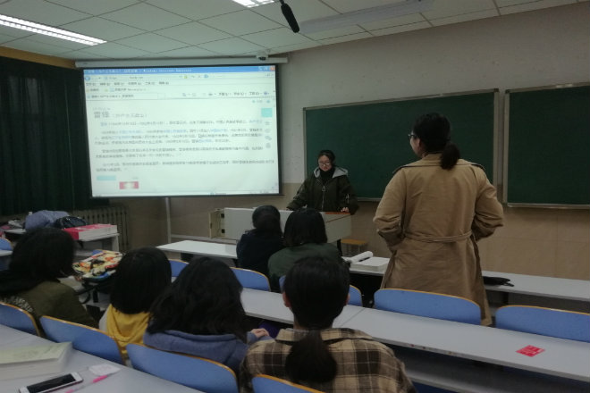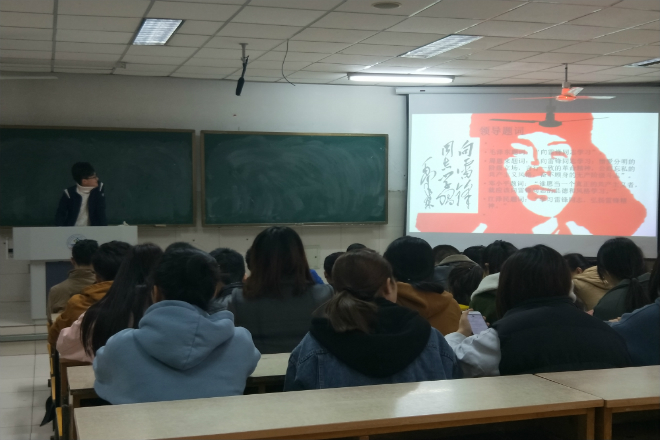 随后,团支书讲述社会各界对雷锋同志的认同和赞扬以及各式各样的学习活动。团支书通过讲述近年来感动中国十大人物、各类“最美”事例以及自己所见所闻,充分阐述当代雷锋就在我们日常生活中,在座学生感触极深。最后,团支书就势发起“弘扬雷锋精神,争做文明使者”号召,学生们积极响应。