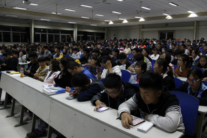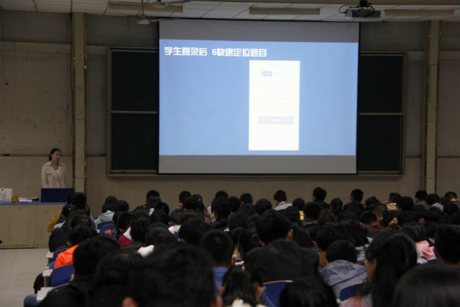 首先,尹鑫老师向同学们详细讲解测评步骤,此次测评首次采用集中网上测试的方式,通过使用时下盛行的二维扫码技术,帮助同学们方便、快捷地完成测评。随后,尹鑫老师用诙谐幽默的语言结合自己亲身经历就大学生活向同学们提出四点建议:一、平衡好学习、工作与活动的关系,进行正确的角色定位,明确身为学生的首要责任;二、注意卫生问题,保持良好的学习与生活环境,提高自律能力,懂得自我约束;三、严格遵守请假销假制度,弘扬严谨学风;四、重视网络、人身、财产及思想安全,加强自我保护意识,懂得保护自己。