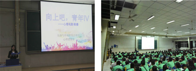 为提升学生心理素质,丰富同学们多姿多彩的大学生活,9月23日晚,资源与环境学院组织开展《向上吧,青年》电影展播活动,2017级全体新生到场观看。
