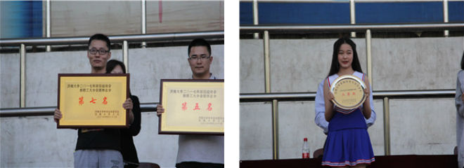 4月28日,济南大学在北苑操场上举行为期两天的田径运动会落下帷幕。在这两天里,运动场上彩旗飘扬,鼓声雷动,锣鼓喧天,运动气氛热烈而浓厚。资源与环境学院获得本次田径运动会优秀组织奖、健美操二等奖暨教职工团体总分132第七名,学院师生代表上台领奖并合影留念。学校主要领导、评委会成员以及全体运动员参加闭幕式。