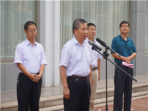 首先,刘浩儒局长代表德州市水利局致辞。他对济南大学资源与环境学院在德州市水利勘察设计研究院建立就业实习基地表示祝贺。他指出,多年来,德州市水利勘察设计研究院与济南大学资源与环境学院在学科建设、科学研究、水利设施的设计与建设等方面开展了多方位合作,为德州的水利勘察、设计和发展做出了许多贡献。希望下一步能够以就业实习基地为平台,进一步加强合作,推动高校和地方的产学研结合,为地方经济发展服好务。