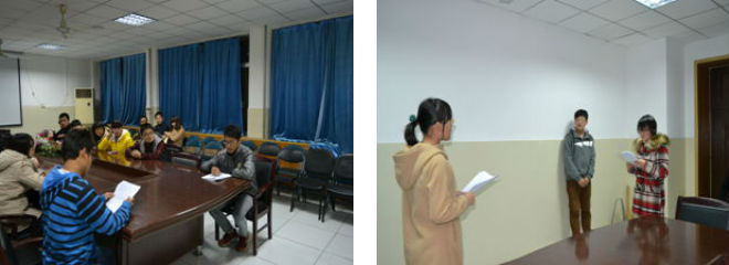 资源与环境学院学生积极参与了此次选拔活动。选拔活动共分为三项,首先由每个人进行自我介绍,同学们各施其能,力求在自我介绍上先拔头筹,比赛一开始就出现了十分激烈的场面,个性鲜明,花样百出的自我介绍给评委留下了深刻的印象。接下来是同学们现场表演的环节,由评委给出剧本,同学们依据个人经验进行现场表演。同学们天马行空的想像,不拘小节的表演让观众和评委如身临其境,有的同学还自我创新,在表演中加入方言和动作,使得现场掌声和笑声不断,活动氛围达到高潮。最后,经过层层选拔,十名优秀演员脱颖而出,至此选拔活动圆满落下帷幕。