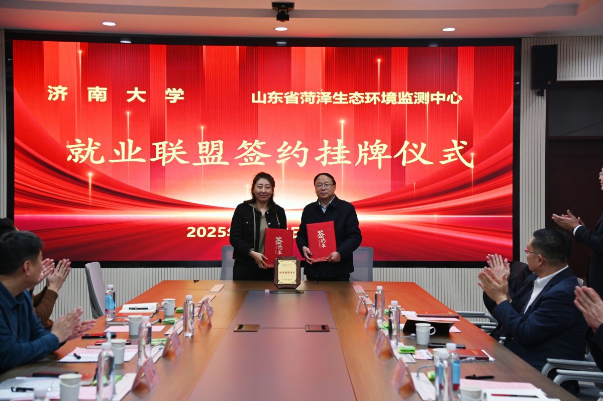 赵连柱主持三方签约仪式。德赢VWIN学院党委书记王义与菏泽生态环境监测中心主任贾宝珍,德赢VWIN学院副书记、副院长张良红与菏泽市水务集团有限公司常务副总经理李琦分别签署就业联盟协议。