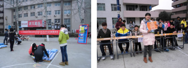 此次“宿舍大比拼”活动由三个环节组成。第一环节为“叠军被大赛”,此环节采用限定时间三分钟、现场打分的方式,以“棱角分明,厚薄一致,平整无皱,对仗整齐”为评分标准。每个宿舍派出的“叠军被能手”将展被、折被、分被等一系列动作一气呵成,他们惊人的速度和娴熟的动作博得了现场同学们的阵阵喝彩。接下来进入“背靠背夹气球接力赛”环节,此环节以班级为单位,男女合作,获胜小组的成员为各自寝室累积相应得分。最后一个环节是“舍长大PK”,舍长们就“抢椅子”比赛和回答主持人提问两方面展开激烈的竞争,为宿舍争荣争分。三轮比赛结束后,评委们对各参赛宿舍进行综合打分,最终,1#301荣获一等奖,1#323、3#519惜摘二等奖,3#709等四个寝室取得三等奖。