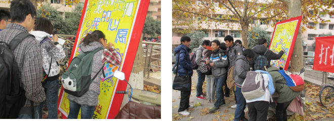 为给资源与环境学院迎新晚会加油打气,表达我院学生对迎新晚会的热切期待和美好祝愿,资源与环境学院学生会于11月23日中午在八食广场开展 “我的资环,我的心愿”迎新晚会心愿征集活动。此次活动受到了同学们的广泛关注和热烈响应。
