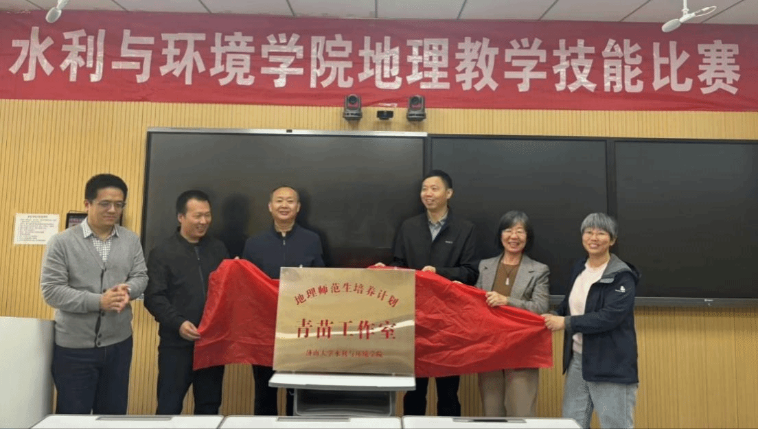赛后,学院副院长庞桂斌主持了济南大学德赢VWIN学院"青苗工作室"揭牌仪式。青苗工作室将作为地理师范生教学能力提升的重要平台,通过名师指导、教学研讨、技能培训等方式,全方位提升同学们的教学素养,助力师范生成长。
