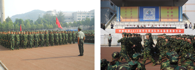 9月15日上午8点,资源与环境学院军训一团在济南大学西校区田径运动场接受了学校领导对2012级新生军训会操检阅,以检验近七天来的训练成绩。12级新生在教官们的严格教导,学院各级领导老师和助理班主任的关心下,通过自己的苦练,在这次会演中他们发挥了应有的水平,赢得了领导的好评。