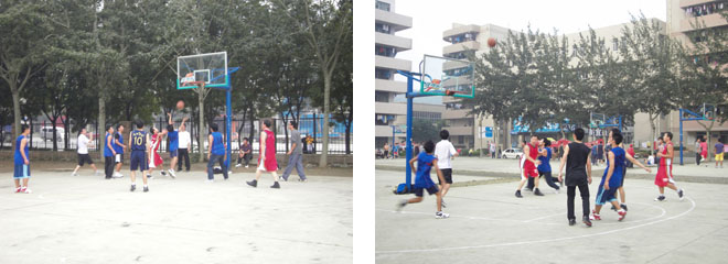 2011年9月29日,在学生会体育部的主办下,我校北院篮球场举办了一场别开生面的师生友谊篮球赛。对战双方分别是我院教职工和部分研究生与学生干部,两队拿出激战的阵势,一场精彩的篮球比赛在众多学生的加油助阵中拉开帷幕。