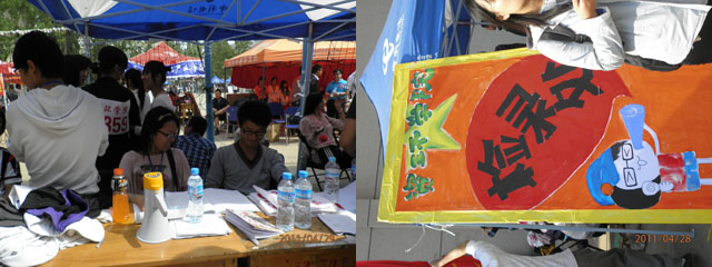 在运动会期间,为使运动会正常有序的进行,资源与环境学院学生会、自律会成员,在检录处辛勤的为各项目的运动员们,进行着紧张有序的检录工作。