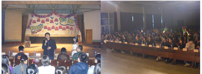 O类舞社的精彩的表演拉开了本次晚会的序幕。之后,各位参赛选手的精彩演出博得同学们一阵阵热烈的掌声,不少观众为之欢呼和尖叫。“时针乐队”的“阳光宅男”们用激扬的摇滚乐曲将本场晚会推上了最高潮。最后,主持人宣布了本次比赛的获奖名单,并由各位嘉宾为他们颁奖,晚会在友好而愉悦的气氛中顺利结束。