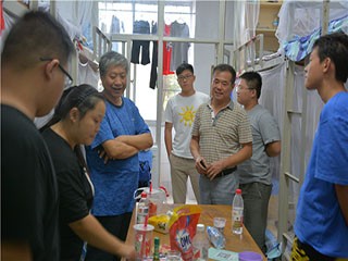 马书记一行人先后走访女生和男生宿舍。老师们重点检查公共设备使用情况,尤其对学生插排使用情况及床板固定状况进行检查、记录,确保新生安全使用。在进入宿舍后,徐院长检查学生插排使用情况,告诫大家注意用电安全。随后,老师们还一同查看宿舍床板固定状况,将不合格床铺记录并进行报修。在交流过程中,徐院长询问学生到校后入学手续办理情况,个人物品购置情况,介绍学校饮食、住宿、交通等生活情况,还亲切询问同学们来自哪里,今天到校后是否适应,有什么困难等。家长与学生纷纷发表自己对学院以及住宿情况的看法,整个过程气氛热烈。