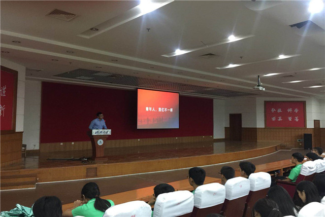 9月19日上午,德赢VWIN学院有幸邀请到学工处张晶老师于济南大学第二学术报告厅为2018级全体新生进行主题为“我们的向往:做爱国励志、求真力行的新时代青年”的专题讲座。学生办公室主任、2018级辅导员郝伟,2016级辅导员白健到场参加。