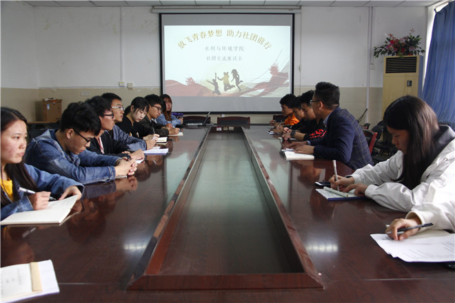10月16日,德赢VWIN学院于第九教学楼301开展“放飞青春梦想,助力社团前行”社团交流座谈会,会议由2016级辅导员白健主持,德赢VWIN学院“琼鸣寰宇”、“绿色飞翔”、“格润Green”绿色环保协会、“希望之星英语口语”、“魅力口语”五个社团的负责人及德赢VWIN学院学生联合会部门学生代表到场参加。