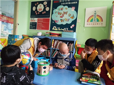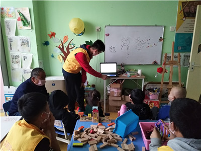 下午两点半,志愿者们准时到达阳光病房,对整间教室进行打扫、消毒,以便迎接孩子们的到来。随后,孩子们与家长陆续来到阳光病房,志愿者们安排孩子们坐好后,便带领孩子们进行搭积木、拼拼图等游戏,迅速拉进与孩子们之间的距离,给他们家的感觉。志愿者们在游戏过程中,引导孩子们主动思考,培养他们自主学习能力。最后,志愿者们利用PPT进行现场教学,向孩子们列举有关火灾的事例,并且讲述面对火灾时如何逃生及自救的知识,告知孩子们相关急救号码。课堂接近尾声,孩子们意犹未尽地与志愿者进行告别,并相约下次相见。