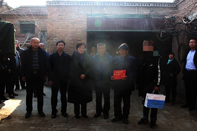 在交谈期间,张副县长提到,国家开展教育扶贫,就首先最重要的问题就是解决贫困家庭的教育的问题,正如习近平总书记所说,扶贫必扶智,让贫困家庭的孩子接受良好教育,是扶贫开发的重要任务也是阻断贫困代际传递的重要途径,而济南大学的家访行动正是如党中央所说的解决贫困家庭教育问题,这无疑帮当地政府解决了一大问题。随后边书记将学校为建档立卡学生的书籍大礼包送到小徐手上,孟处长把慰问金以及大米、面粉、食物油等慰问品交到小徐同学爷爷的手里,他们感动得泪眶满盈并不停地表达感谢,依依不舍地送走了徐院长等家访小组成员。