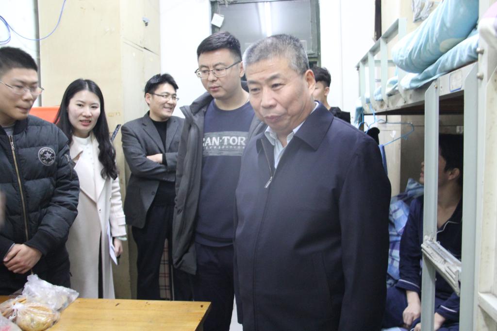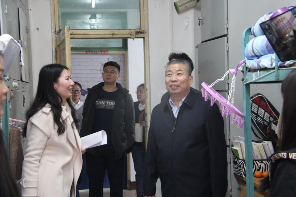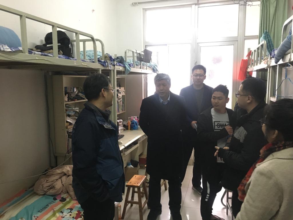 走访过程中,老师们先是亲切的询问同学们旅途是否劳累,并嘱咐同学们注意休息,要以饱满的热情投入到即将开始的新学期的学习中。马书记结合学生所处的年级,提出建议:针对大三学生,他表示,希望同学们在这一关键人生阶段做好人生规划,在多形式的奋斗方向中找明自身的优势;在毕业生宿舍,他叮嘱毕业学生要珍惜在校时光,在今后的成长道路中,自觉加强自我管理、自我教育的能力,以大格局、大胸怀面对未来的挑战。同时,还进一步察看了学生宿舍的床铺备品、保暖设备、墙面地面、卫生间等基础设施情况,对走访过程中发现的安全隐患及时向相关人员提出整改建议。