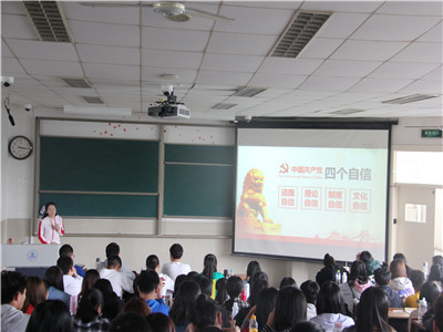 首先,高蓉蓉老师讲解了“四个自信”,即道路自信、理论自信、制度自信与文化自信的主要概念,以及坚持“四个自信”的意义。随后,高老师以“文化自信”为主要侧重点,从“文化自信”源于何处、坚持“文化自信”的意义以及如何增强“文化自信”三个方面进行了详细地讲述。最后,高老师强调,同学们在日常生活中要坚定“四个自信”,尤其要做到“文化自信”,始终坚持从历史走向未来的原则,确立人生的方向,以坚如磐石的信仰力量为后盾,完成自己的人生目标。