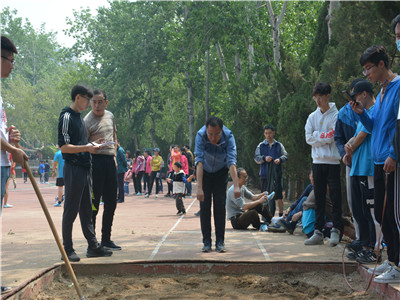在比赛开始前,吴恩江老师身着学院运动服时而弹跳,时而跨步压腿,自信的脸上没有表现出丝毫压力。短暂的热身结束,比赛正式开始,在裁判的指引下,比赛在激烈且有序地进行着。尽管沙地沙子飞扬,灰尘扑面而来,但教工运动员们也毫不在意,专心跳出更好的成绩。轮到吴老师上场,只见他深呼吸,身体前倾,双手扬起,双腿微躬,在长长地舒一口气后,奋力起跳,在空中划出一道完美的弧线。吴老师的这一跳,双脚尚未完全站稳,看台上便爆发出雷鸣般的掌声,同学们高声喝彩助威,口号声响彻北苑操场上空。在接下来的比赛中,吴恩江老师稳定发挥,获得男子教工老年组跳远比赛的第六名。
