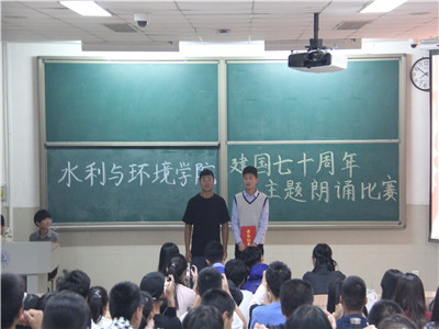 风雨砥砺,岁月如歌,为庆祝中华人民共和国七十周年华诞,9月22日德赢VWIN学院于第十一教学楼五段101举办庆祝新中国成立七十周年主题朗诵比赛,德赢VWIN学院学生会主席团担任评委,2019级各班观众代表到场参加。