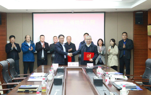 4月14日上午,济南大学与山东省第八地质矿产勘查院共建毕业生就业实习基地和本科实践教学基地签约揭牌仪式在山东省第八地质矿产勘查院举行。山东省第八地质矿产勘查院党委书记、院长李星传,党委副书记张辉,副院长马登贤、朱伟,济南大学德赢VWIN学院院长徐征和、副院长庞桂斌、学院办公室及学科专业负责人等同志出席揭牌仪式。仪式由李星传书记主持。