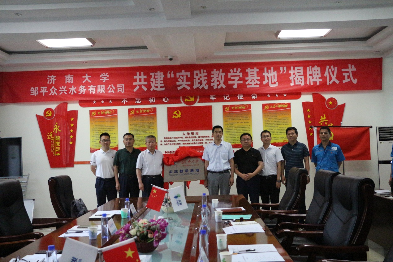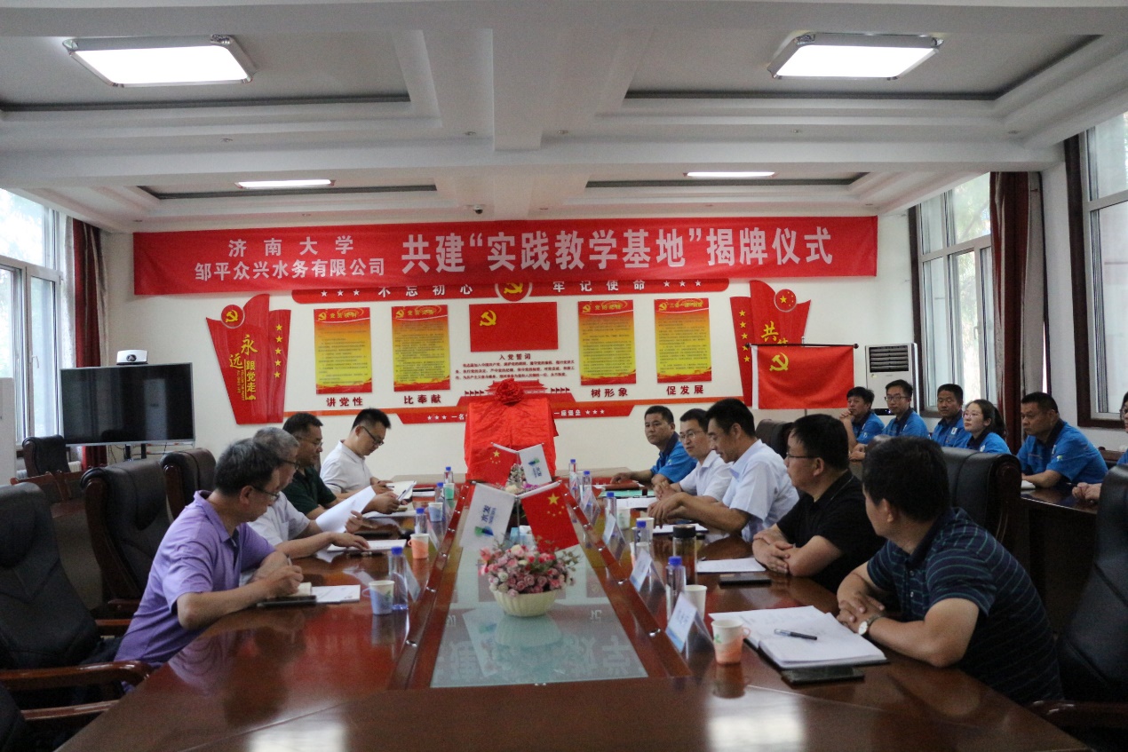 6月10日下午,济南大学与水发众兴集团前往邹平众兴水务有限公司举行实践教学基地签约暨揭牌仪式。济南大学德赢VWIN学院院长徐征和,教授杨丽原,办公室主任曲华明,系主任赵春辉及水发众兴集团副总经理丁邦宏、水务事业部总经理刘辉、副总经理王介重及邹平众兴水务有限公司相关负责同志参加揭牌仪式。会议由水发众兴集团副总经理丁邦宏主持。