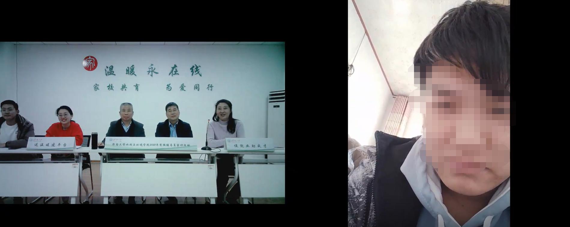 1月3日,德赢VWIN学院开展2022年寒假家访活动,学院党委书记王义,院长徐征和,副书记、副院长张良红,学办主任赵敬媛、2021辅导员张通组成家访活动工作小组,对2021级宋同学、马同学进行线上家访。