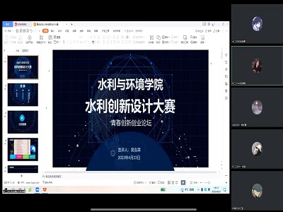 为帮助同学们更好的了解全国大学生水利创新设计大赛,营造浓厚科创氛围,德赢VWIN学院于4月23日晚7点以线上腾讯会议的方式举办关于此次大赛的青春创新创业论坛。本次活动邀请了曾获第七届全国大学生水利创新设计大赛国家三等奖的吴泓霖同学作为主讲人进行经验分享。