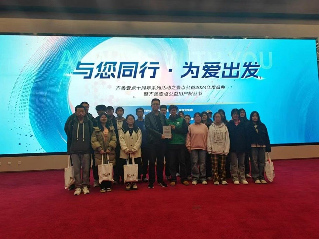11月23日下午,由共青团山东省委、大众报业集团指导,齐鲁晚报·齐鲁壹点主办的“与您同行·为爱出发”齐鲁壹点十周年系列活动之壹点公益2024年度盛典暨齐鲁壹点公益用户粉丝节活动在大众传媒大厦圆满落幕。济南大学绿色飞翔环保协会应邀出席典礼,荣膺壹点公益“优秀志愿服务团队”殊荣。