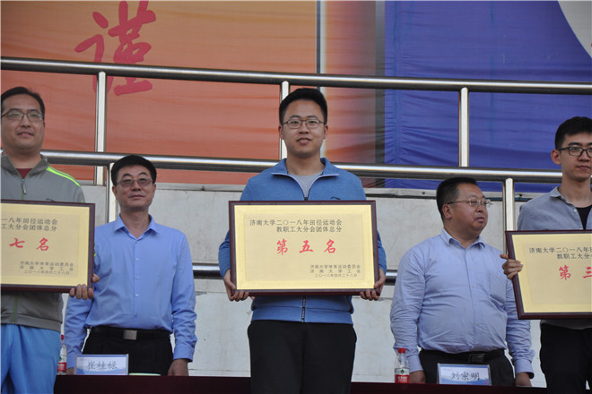 4月28日,济南大学举办的2018年春季运动会迎来尾声。在经过两天的激烈比拼之后,学校各院均获得不错的成绩。其中,德赢VWIN学院赢得济南大学2018年田径运动会教职工分会团体总分第五名的荣誉,学院师生代表上台领奖并合影留念。本次闭幕仪式于下午五点举行,学校主要领导、评委会成员以及全体运动员悉数到场。