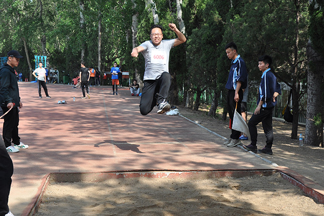 运动会教工青年组跳远决赛于27日下午举行,比赛开始前,德赢VWIN学院的老师们通过慢跑、压腿、活动关节等方式积极热身,使身体进入赛前准备状态。比赛开始,老师们沿直线助跑,在起跳板线后单脚起跳,双脚腾空落入沙坑。王永森老师在前两次成绩不理想的情况下,及时调整状态,只见王老师在裁判发令后,先慢速起跑,然后加速,在起跳板线后用力一蹬,猛地一跃,两腿向前伸展,在空中划出了一道弧线,落在了松软的沙子里,留下深深的印记。轻盈的动作,完美的腾跃,赢得了在场师生和裁判的喝彩。最终,王永森老师以4.92米的优秀成绩获得了教工青年组跳远决赛的第二名,白健老师以4.64米的优秀成绩获得了教工青年组跳远决赛第四名。