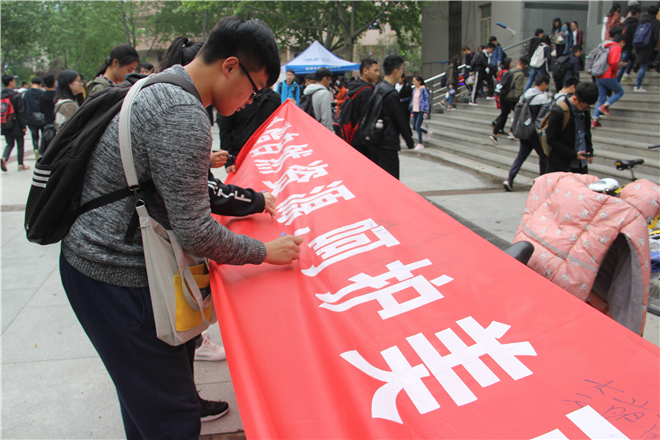 为进一步宣传世界地球日相关知识,23日中午,志愿者在八食广场开展“爱护地球”签字活动。活动中,志愿者利用所学知识向来往行人讲述保护地球的重要性,及如何做到保护地球从我做起。行人深受感染,纷纷签字以表决心。
