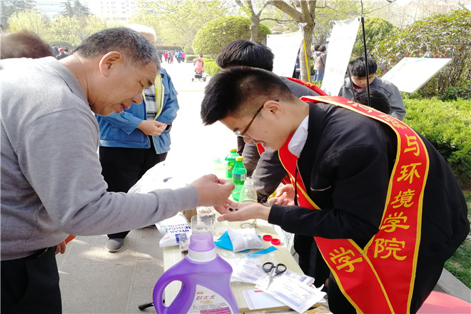 3月31日,由济南大学志愿者联合会和资源与环境学院青年志愿者协会联合承办的“节水净水走近千家万户”活动于英雄山赤霞广场顺利举行。