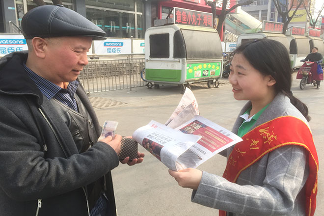 下午两点,志愿者们拿到报纸后,在济南大学新西门附近正式展开义卖活动。正值雷锋月,同学们学雷锋的积极性颇高,热情地号召路人献出爱心。在志愿者们向路人介绍此次捐助对象的情况后,许多路人纷纷表示乐意帮助有困难的人,慷慨解囊。虽然志愿者们也时常遭到拒绝,但更多的是得到好心人的理解。一名路人没有拿走报纸,但仍留下了善款,说:“能帮到孩子是最重要的,报纸可以不要。”约一小时的时间内,同学们已将报纸全部卖出。参加活动的一位志愿者说道:“爱心义卖是一件非常有意义的事情,通过这次活动,我看到了市民们对患病儿童的爱心。”活动结束后,共计卖出报纸30份,筹得善款近200元,本次活动筹集到的资金将全部通过“张刚大篷车”捐给一位患白血病的儿童。