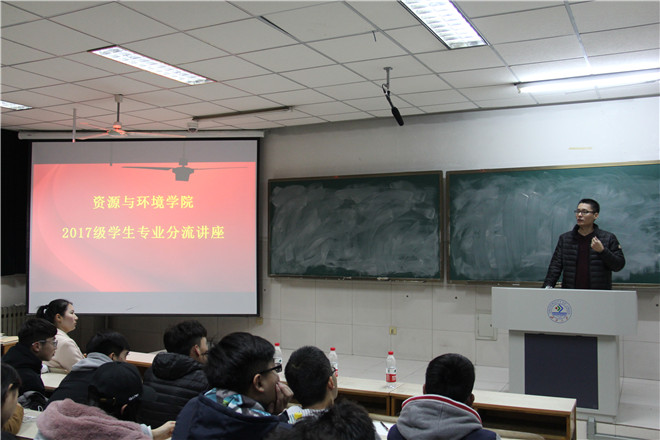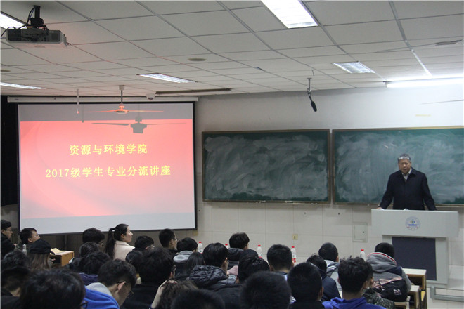 为解答同学们在专业分流中遇到的问题,让同学们选到自己喜欢的专业。3月16日,资源与环境学院在2教103召开2017级水利类学生专业分流讲座。资源与环境学院党委书记马振民,资源科学与工程系主任桑国庆,2017级辅导员尹鑫到场为同学们进行指导。