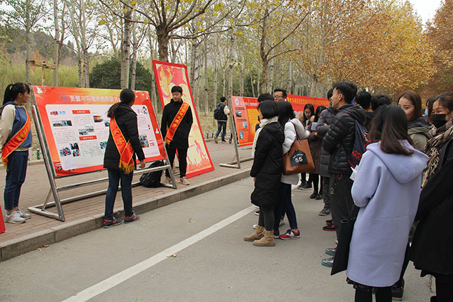 为响应济南大学校志愿者联合会开展的消防安全宣传月活动,提高同学们对消防知识的学习热情,熟悉火灾逃生的技巧。11月29日,资源与环境学院积极参加学校在第八食堂广场举行的消防月成果展活动。