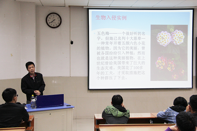 资源与环境学院地理科学专业教授周保华、副教授刘展宏分别就专业所涉及的热点问题为学生进行解读。一方面向学生解读了地理科学专业的课程设置、学术领域相关成果及专业就业前景,另一方面就与生活密切相关的雾霾问题,从地理科学等专业的角度阐述了二者之间的紧密联系;环境工程专业教授王立国,副教授杨宝山、李合莲、张玲等几位老师,从专业所研究的相关课题内容展开,向学生展现了专业发展所涉及的研究方向,并从“膜分离与环境”、“生物入侵与生态安全”、“土壤重金属污染与农产品安全”、“半导体气敏传感材料的应用及发展概况”等课题出发,将学术领域的相关成果呈现给学生。水文与水资源工程专业教授孔珂将中国水利史分为先秦时期、秦汉至南北朝时期、隋唐至宋辽金时期、元明清时期至近代四个阶段详述了水利的历史,并讲解了各个时期中国水利的主要特点等;水利工程专业教授邢立亭、徐立荣,副教授王秀菊、李庆国、刘本华、韩延成等几位老师则就水的重要性、发展中国家的水的发展、山东省地下水污染调查、水资源专业的机遇等相关问题进行报告解读。