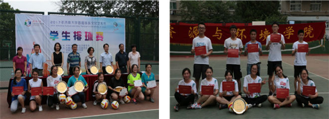 自济南大学排球比赛初赛开始后,资环学院队员积极备战,在初赛、预赛中获得优异成绩顺利进入决赛。下午三点半,决赛正式开始。男排比赛率先开始,资环、政法双方队员迅速进入比赛状态,发挥各自优势,将比赛推入高潮,引发观众们阵阵呼喊。最终资环学院以1:2惜败政法学院。随后的女排决赛中,资环女排在保持第一场胜利情况下,在接下来的两场比赛中再接再厉,一个个精彩扣球、拦网,双方队员都充分发挥出个人技术及战术配合,两队实力旗鼓相当,但最终资环学院以1:2不敌商学院遗憾落败。