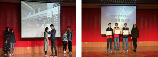 资源与环境学院的参赛队员历时近一个月的准备时间,充分利用课余时间积极排练,在决赛中表现优异。本次参赛作品《没有梦想,何必远方》将想要出国的女孩与追求安稳生活的母亲和不舍分离的男友作为冲突点,以女孩内心从不断挣扎到逐渐坚定的心理变化为发展主线,讲述了女孩从不被理解到最后得到了大家支持的故事。故事情节发展到高潮,演员和观众们都全身心投入到表演中,同学们将剧中人物的痛苦、纠结、不甘、喜悦表现的淋漓尽致,获得在场评委和观众的一致好评,最终取得优异成绩。短短十几分钟的表演,却是同学们经过无数次排练和剧本修改的成果,同学们的倾情演出赢得了观众的阵阵掌声。