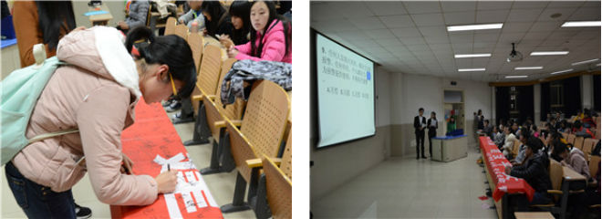 比赛最后,主持人向获奖的小组颁发奖状与奖品,资源与环境学院等四个学院的联合志愿们在条幅上庄严签字,并纷纷表示加强宿舍安全工作从我做起,之后比赛圆满结束。