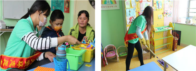 下午3点,资源与环境学院晨曦志愿者服务队到达齐鲁儿童医院新阳光病房学校。有过一次志愿服务经历的志愿者们相较第一次有了很大的进步,熟练的将病房学校里的玩具、桌椅、学习用具进行了清洗消毒。准备工作完毕后,志愿者们将几位迫不及待等在门口患儿们领进学校。面对陌生的面孔,患儿们羞涩的不肯说话,在志愿者的努力下,孩子们渐渐和志愿者们熟悉起来,大家一起搭积木、折纸、绘画。对于已经上学的儿童,志愿者对他们进行了一对一的课程辅导。在与志愿者们的交流中,孩子们都露出了笑容。放学的时间到了,送走了孩子们后,志愿者们对房间里的座椅、玩具、学习用具再次进行了清洗消毒后才离开。