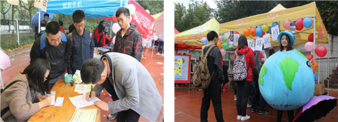 活动现场,灵动的“地球人”成为社团节一道靓丽的风景线,在积极配合同学们拍照留念的同时,“地球人”带着“人与自然和平相处”的理念,将环保意识深入人心。