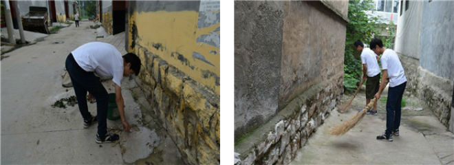 7月25日,资源与环境学院“探访郭庄保护家园环境”社会实践团为了更好的弘扬此次活动的实践和志愿者精神,团队成员清扫村里的卫生。