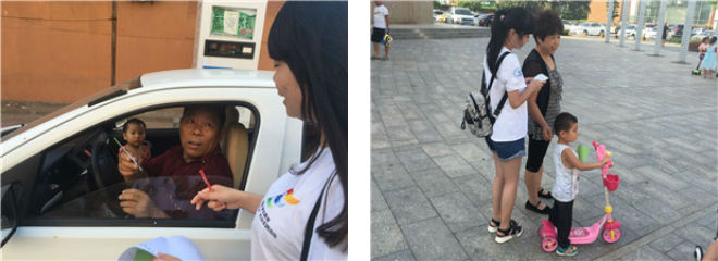 早晨十点,队员们到达三里桥社区,采用随机抽样的方式开展问卷调查活动,居民们认真填写调查问卷积极配合本次调查。志愿者向居民们详细介绍当前水污染现状和水环境保护方法,调查中发现:当地绝大部分的群众对水污染了解较多,但是少数居民还是没有养成良好用水习惯。志愿者们针对此调查结果,向大家分享日常生活节水小窍门,并呼吁大家节约水资源从小事做起。当地的居民们纷纷表示,以后会注意平时生活用水习惯,从身边做起,为水资源的保护贡献力量。