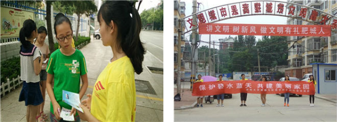 深入居民小区 齐心宣传环保--资源与环境学院泰安康王河环境污染社会实践团开展环保宣传活动