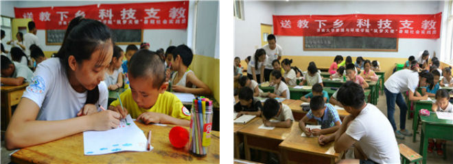 把美术教学与环保教育有机结合,在美术教学中提高学生的环保意识,把文明新风带到农村,把科学的知识带给当地百姓,提高农村人口素质,培育同学自觉为人民服务的责任意识,正是“筑梦天使”实践团不变的初衷。
