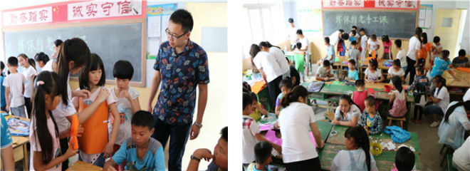 7月15日,资源与环境学院“筑梦天使”社会实践团来到寿张集镇育英小学,持续开展三下乡支教活动,志愿者们在资源与环境学院学办白健老师的指导下带领小朋友们开展环保创意手工课。